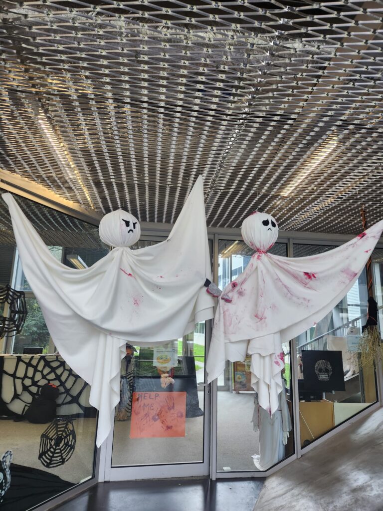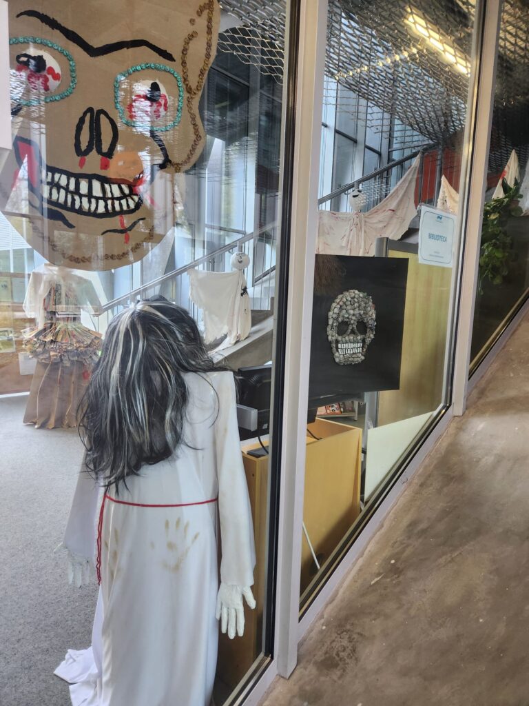 Com muita criatividade e espírito festivo, deram vida a decorações assustadoramente divertidas que já estão a encantar (e arrepiar!) quem por lá passa. 📚🦇