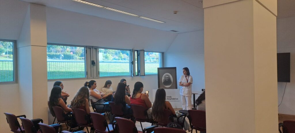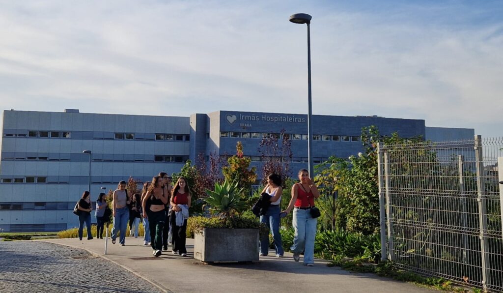 Depois do almoço, a turma do 10º ano seguiu, com uma professora Isabel Sousa, para as Irmãs Hospitaleiras-Casa de Saúde do Bom Jesus, Unidade de Saúde de referência na prestação de cuidados especializados em Psiquiatria e Saúde Mental, Demências, Reabilitação Psicossocial e Comportamentos Aditivos e Dependências, com respostas especializadas em ambulatório, internamento e reabilitação. À sua espera estava a enfermeira chefe Margarida que, simpaticamente, apresentou os serviços especializados que a instituição dispõe. Seguidamente, fez uma visita guiada aos espaços interiores e exteriores, explicando a sua utilização e finalidade no bem-estar das cerca de seiscentas utentes internas para além dos serviços prestados em parceria com as ULS de Braga e Guimarães.