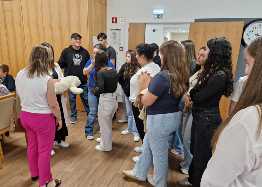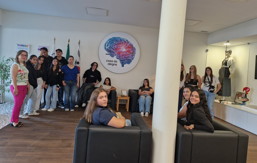 As turmas dos 11º e 12º anos, acompanhadas pelas professoras Maria Simões e Vilma Mateus, viajaram para Vila Verde, com destino à Casa da Alegria- Centro Social Vale do Homem (CSVH). Lá chegados foram recebidos pela expressiva e comunicativa Dra. Maria do Céu. neuropsicóloga que os acompanhou na visita pela instituição que reúne duas respostas sociais (Lar e Centro de dia) especializados para pessoas com Alzheimer ou outras demências. Visitaram a sala Sensorial, a sala de Musicoterapia e Dança, a Sala de Reabilitação, o Circuito de Manutenção da Memória e Jardim Terapêutico e Sensorial. Conheceram a “Dollyterapia” e a Roboterapia com a foca Paro.
