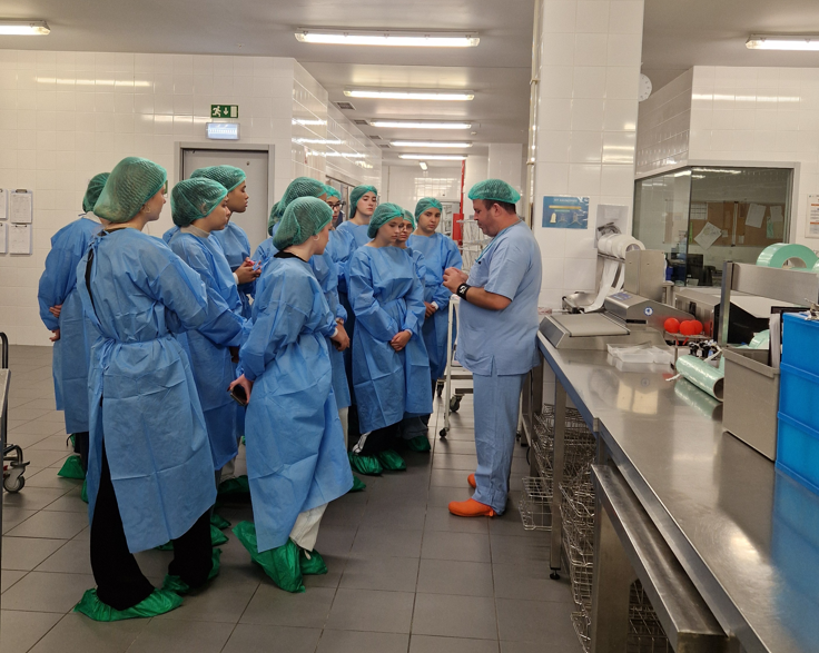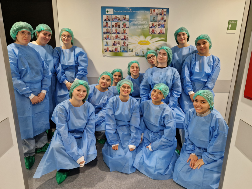 No dia passado dia 17 de outubro, as turmas dos 10º, 11º e 12º anos do Curso Profissional Técnico Auxiliar de Saúde, acompanhadas de três professoras das disciplinas técnicas, tecnológicas e práticas rumaram, de autocarro, a Braga para visitarem a Central de Esterilização do Hospital de Braga (ULS Braga). Foram recebidos pelo Enfermeiro Nuno Ferreira e pelo Técnico Auxiliar de Saúde (TAS) Paulo. Aqui consolidaram e realizaram aprendizagens, de como se processa a limpeza e esterilização de milhares de dispositivos que são usados diariamente pelos profissionais de saúde dos vários serviços. Guiados pelo entusiasta e comunicativo TAS Paulo conheceram todas as áreas delimitadas na Central de Esterilização: Zona de Descontaminação, Zona de Inspeção e Zona de Processamento (empacotamento dos dispositivos).