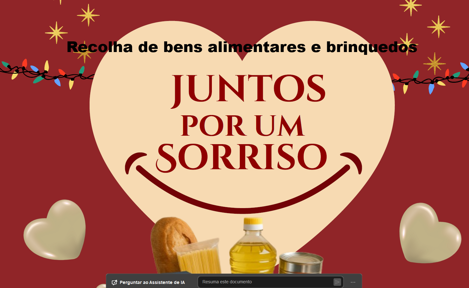 O Curso Profissional de Técnico Animador Sociocultural, no âmbito da realização de um Projeto para a Prova de Aptidão Profissional (PAP), vai desenvolver uma campanha com o objetivo de promover a solidariedade e o espírito de entreajuda na nossa comunidade escolar. A iniciativa consiste numa recolha de bens alimentares e brinquedos, que serão posteriormente entregues a famílias carenciadas que estão a ser acompanhadas pela SOPRO.